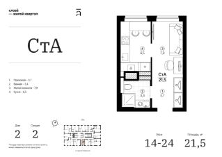 Продаётся студия в строящемся доме (Дом 2 секция 2), срок сдачи: IV-кв. 2028, общей площадью 21.45 кв.м., на 16 этаже. Жилой квартал "Слова" — это новые смыслы.