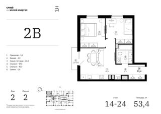 Продаётся 2-комнатная квартира в строящемся доме (Дом 2 секция 2), срок сдачи: IV-кв. 2028, общей площадью 53.44 кв.м., на 20 этаже. Жилой квартал "Слова" — это новые смыслы.
