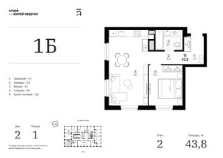 Продаётся 1-комнатная квартира в строящемся доме (Дом 2 (секции 1, 2)), срок сдачи: IV-кв. 2028, общей площадью 43.79 кв.м., на 2 этаже. Жилой квартал "Слова" — это новые смыслы.