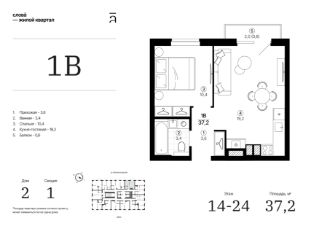 Продаётся 1-комнатная квартира в строящемся доме (Дом 2 (секции 1, 2)), срок сдачи: IV-кв. 2028, общей площадью 37.15 кв.м., на 21 этаже. Жилой квартал "Слова" — это новые смыслы.