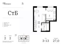 Продаётся студия в строящемся доме (Дом 2 (секции 1, 2)), срок сдачи: IV-кв. 2028, общей площадью 27.04 кв.м., на 3 этаже. Жилой квартал "Слова" — это новые смыслы.