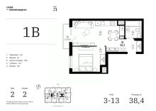Продаётся 1-комнатная квартира в строящемся доме (Дом 2 (секции 1, 2)), срок сдачи: IV-кв. 2028, общей площадью 38.38 кв.м., на 4 этаже. Жилой квартал "Слова" — это новые смыслы.