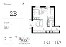 Продаётся 2-комнатная квартира в строящемся доме (Дом 2 (секции 1, 2)), срок сдачи: IV-кв. 2028, общей площадью 53.68 кв.м., на 6 этаже. Жилой квартал "Слова" — это новые смыслы.