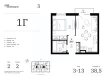 Продаётся 1-комнатная квартира в строящемся доме (Дом 2 (секции 1, 2)), срок сдачи: IV-кв. 2028, общей площадью 38.48 кв.м., на 6 этаже. Жилой квартал "Слова" — это новые смыслы.