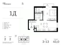 Продаётся 1-комнатная квартира в строящемся доме (Дом 2 (секции 1, 2)), срок сдачи: IV-кв. 2028, общей площадью 43.02 кв.м., на 6 этаже. Жилой квартал "Слова" — это новые смыслы.