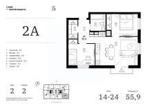 Продаётся 2-комнатная квартира в строящемся доме (Дом 2 (секции 1, 2)), срок сдачи: IV-кв. 2028, общей площадью 55.88 кв.м., на 19 этаже. Жилой квартал "Слова" — это новые смыслы.