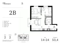 Продаётся 2-комнатная квартира в строящемся доме (Дом 2 (секции 1, 2)), срок сдачи: IV-кв. 2028, общей площадью 53.44 кв.м., на 19 этаже. Жилой квартал "Слова" — это новые смыслы.