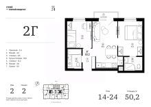 Продаётся 2-комнатная квартира в строящемся доме (Дом 2 (секции 1, 2)), срок сдачи: IV-кв. 2028, общей площадью 50.15 кв.м., на 19 этаже. Жилой квартал "Слова" — это новые смыслы.
