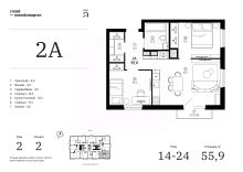 Продаётся 2-комнатная квартира в строящемся доме (Дом 2 (секции 1, 2)), срок сдачи: IV-кв. 2028, общей площадью 55.88 кв.м., на 20 этаже. Жилой квартал "Слова" — это новые смыслы.