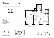Продаётся 2-комнатная квартира в строящемся доме (Дом 2 (секции 1, 2)), срок сдачи: IV-кв. 2028, общей площадью 51.4 кв.м., на 21 этаже. Жилой квартал "Слова" — это новые смыслы.