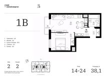 Продаётся 1-комнатная квартира в строящемся доме (Дом 2 (секции 1, 2)), срок сдачи: IV-кв. 2028, общей площадью 38.14 кв.м., на 21 этаже. Жилой квартал "Слова" — это новые смыслы.