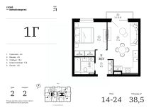 Продаётся 1-комнатная квартира в строящемся доме (Дом 2 (секции 1, 2)), срок сдачи: IV-кв. 2028, общей площадью 38.48 кв.м., на 21 этаже. Жилой квартал "Слова" — это новые смыслы.