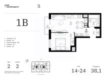 Продаётся 1-комнатная квартира в строящемся доме (Дом 2 (секции 1, 2)), срок сдачи: IV-кв. 2028, общей площадью 38.14 кв.м., на 22 этаже. Жилой квартал "Слова" — это новые смыслы.