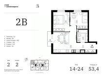 Продаётся 2-комнатная квартира в строящемся доме (Дом 2 (секции 1, 2)), срок сдачи: IV-кв. 2028, общей площадью 53.44 кв.м., на 22 этаже. Жилой квартал "Слова" — это новые смыслы.