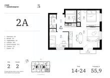 Продаётся 2-комнатная квартира в строящемся доме (Дом 2 (секции 1, 2)), срок сдачи: IV-кв. 2028, общей площадью 55.88 кв.м., на 23 этаже. Жилой квартал "Слова" — это новые смыслы.