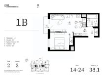 Продаётся 1-комнатная квартира в строящемся доме (Дом 2 (секции 1, 2)), срок сдачи: IV-кв. 2028, общей площадью 38.14 кв.м., на 23 этаже. Жилой квартал "Слова" — это новые смыслы.