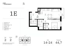 Продаётся 1-комнатная квартира в строящемся доме (Дом 2 (секции 1, 2)), срок сдачи: IV-кв. 2028, общей площадью 44.67 кв.м., на 23 этаже. Жилой квартал "Слова" — это новые смыслы.
