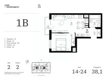 Продаётся 1-комнатная квартира в строящемся доме (Дом 2 (секции 1, 2)), срок сдачи: IV-кв. 2028, общей площадью 38.14 кв.м., на 24 этаже. Жилой квартал "Слова" — это новые смыслы.
