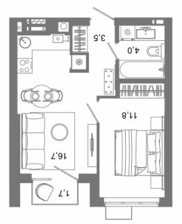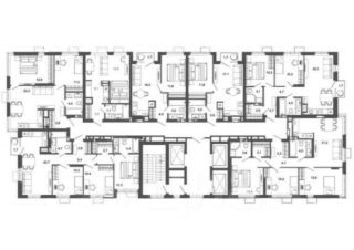 В проекте представлены 107 планировочных решений: от уютных студий 31,1 м² до квартир с тремя спальнями и кухней-гостиной 128 м² с функциональным разделением на гостевую и приватные зоны.