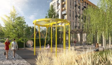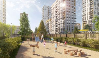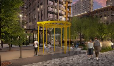 Общая площадь благоустройства проекта — 7 гектаров. Главная особенность проекта — переменная этажность домов от 8 до 25 этажей.