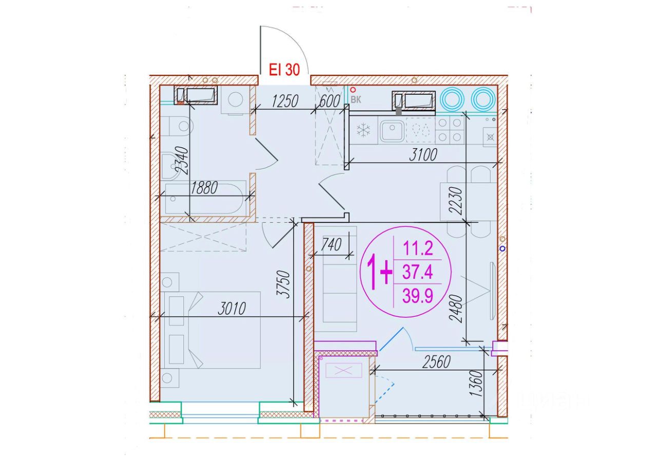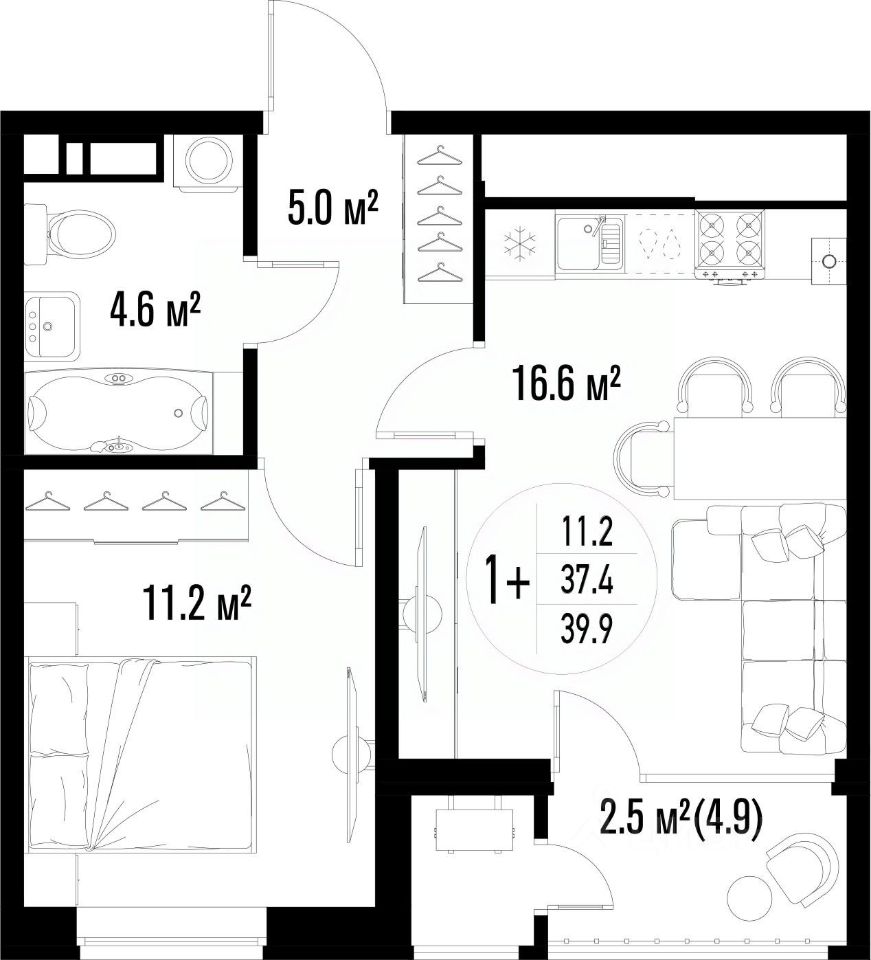 Общая площадь39,9 м²