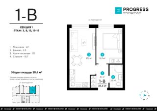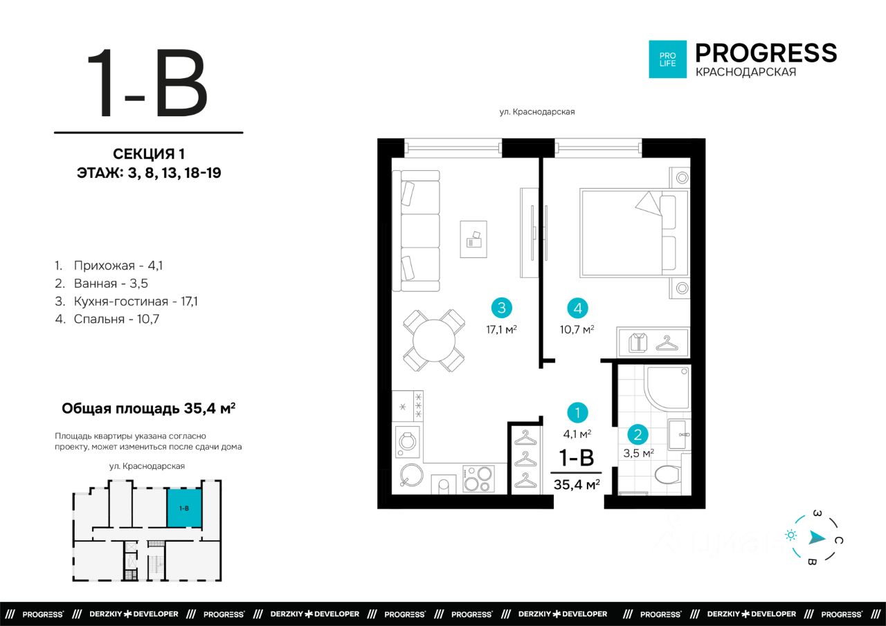 Продаётся 1-комнатная квартира в строящемся доме (Дом 1), срок сдачи: I-кв. 2028, общей площадью 35.38 кв.м., на 3 этаже. Новый жилой комплекс "Точка" от застройщика "Будущее" расположен по адресу: г. Астрахань, ул. Краснодарской, 43а