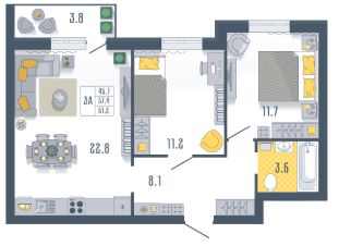 Продуманные планировки: На лестничной площадке не более восьми квартир, минимальная площадь квартиры 33,3 кв.м. Мы отказались от маленьких студий, чтобы обеспечить вам простор и комфорт.