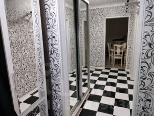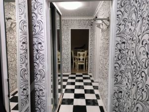 Квартира в отличном состоянии, при выполнении отделочных работ выдержан единый стиль. Стены жилых комнат-комбинированные обои по цветовой гамме, полы в комнатах линолеум, в коридоре и кухне -плитка. Во всей квартире натяжные потолки;установлены пластиковые окна, лоджия остеклена профилем ПВХ. Законченный интерьер и уют создают шторы и светильники.