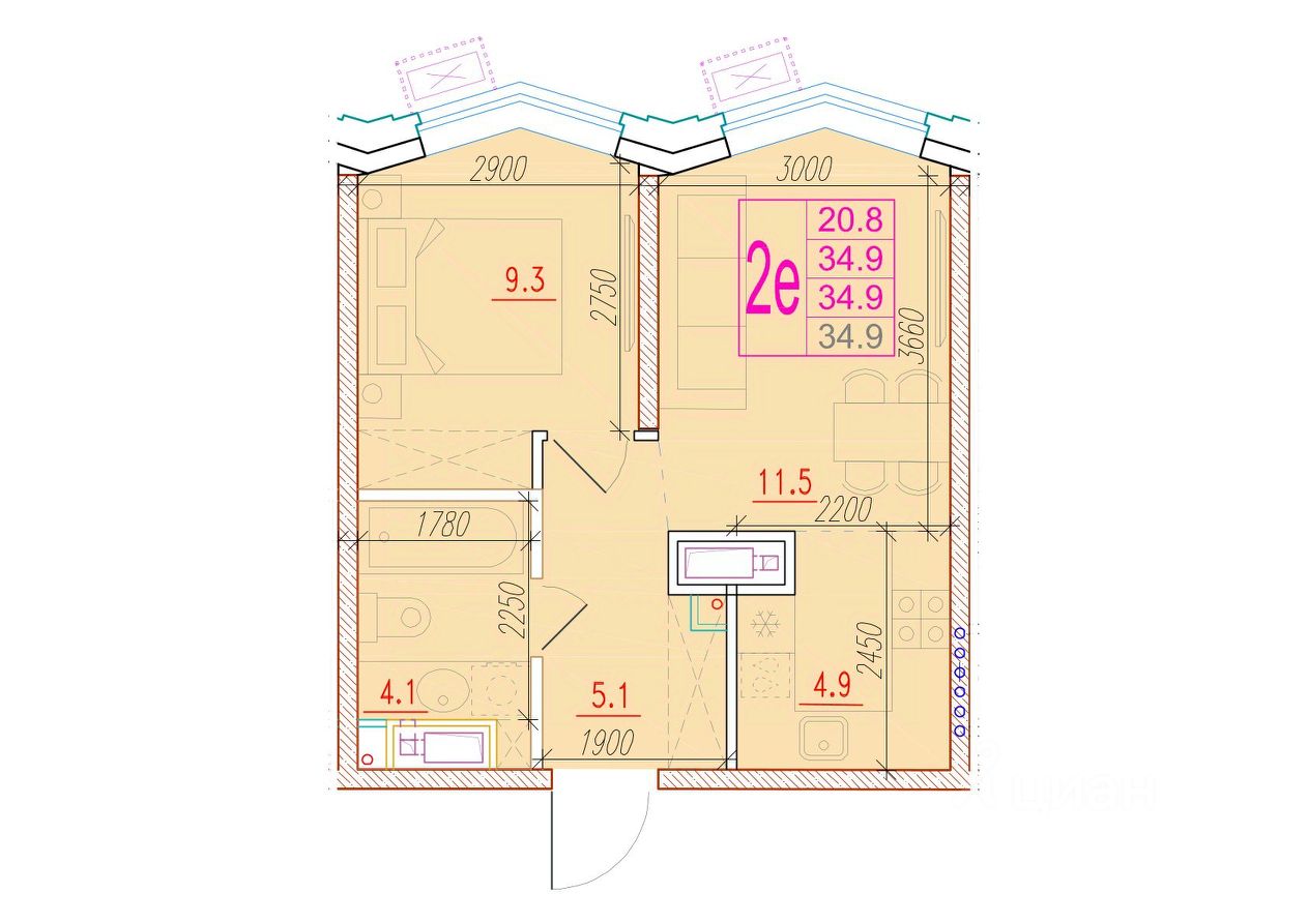 Общая площадь34,9 м²