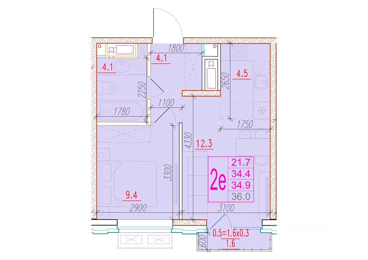 Общая площадь34,9 м²