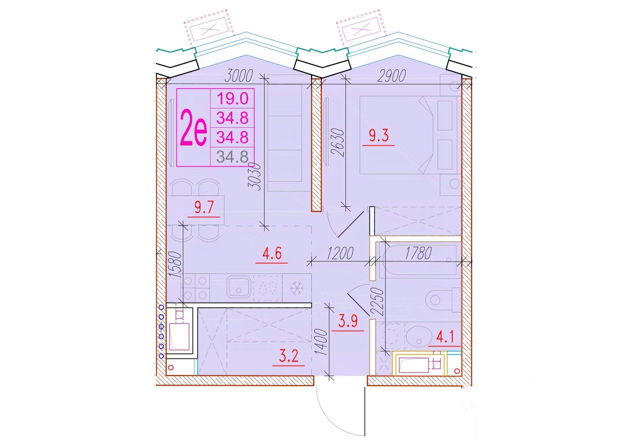 Общая площадь34,8 м²