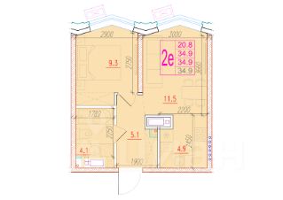 Общая площадь34,9 м²