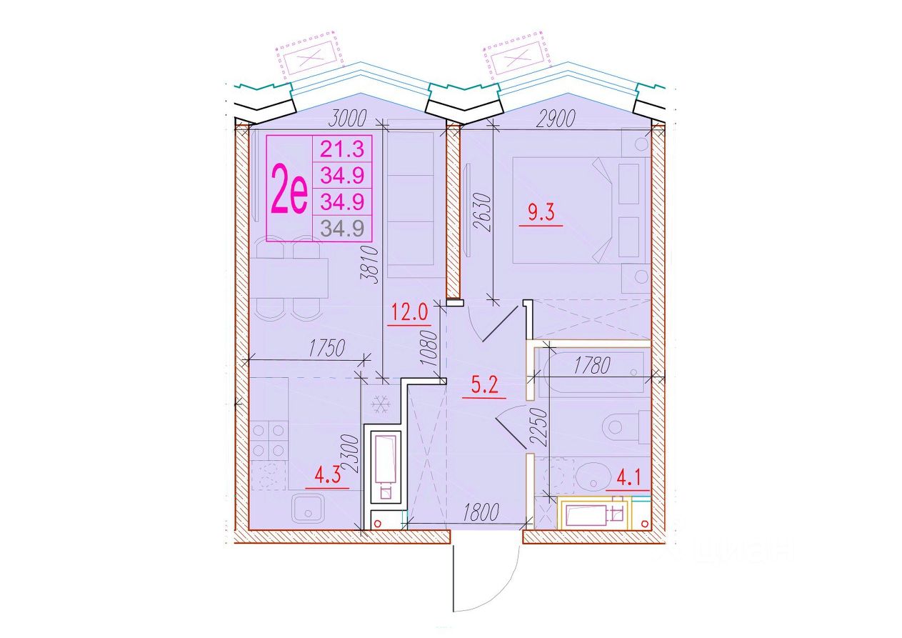 Общая площадь34,9 м²
