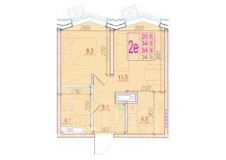 Общая площадь34,9 м²