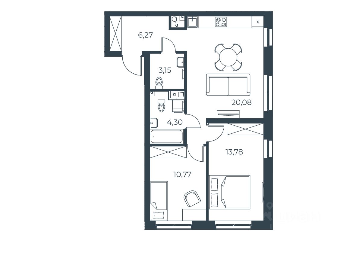 Общая площадь59,62 м²