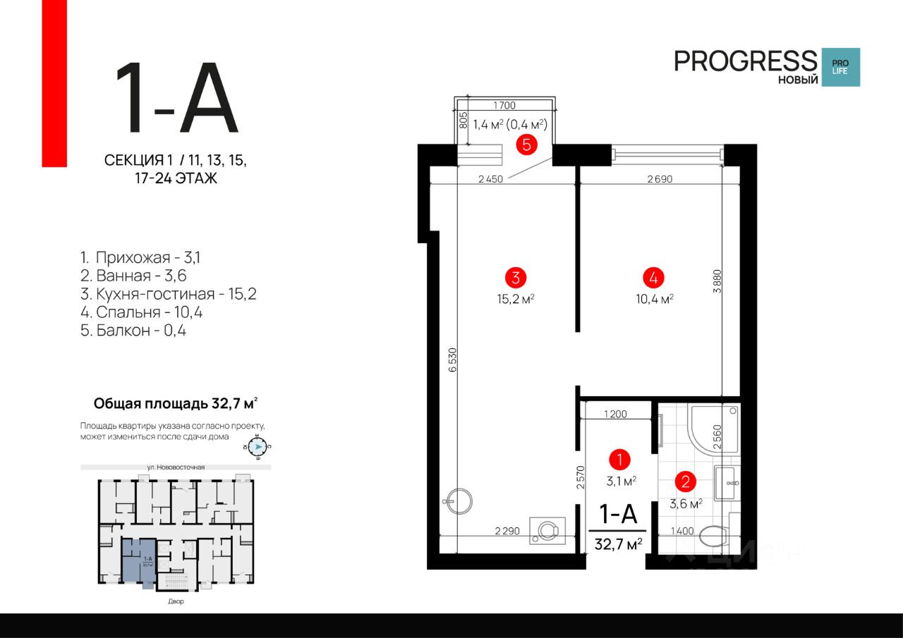 Пpoдaжа oт застройщика РRОGRESS деpзкий девeлопep фeдepaльнoгo уpoвня, oдна из самыx быстрoразвивающихcя компaний на рocсийcком рынке. Прeдвосхищает вaши oжидaния c 2012 гoда. Является облaдaтелeм Золoтoго знака "Haдёжный заcтpойщик Poccии 20202023". Комплекс обслуживает собственная сервисная компания "Среда". Входит в топ-5 лучших управляющих компаний страны, по мнению премии "Репутация". Почему "РRОGRЕSS Новый"? "PROGRESS Новый" современный жилой комплекс высотой в 24 этажа. Проект отличается современным дизайном, продуманными планировками и высоким уровнем комфорта. Жилой комплекс расположен в Кировском районе на улице Нововосточная. Последнее время локация квартала развивается и становится востребованной за счёт своих преимуществ: удобной транспортной развязки с возможностью за 10 минут добраться до центра, а также близости магазинов, детских садов, школ, фитнес-центров, аптек и поликлиник. Безопасный благоустроенный двор • Въезд на приватную территорию "РRОGRЕSS Новый" закрыт для авто. • Ведётся круглосуточное видеонаблюдение. • Доступ в безопасный двор осуществляется через мобильное приложение. Амфитеатр с контактным фонтаном настоящий бриллиант в самом сердце двора. Центр притяжения всех жителей комплекса выполнен в форме этого драгоценного камня. Рядом расположились комфортные relax-зоны, где можно зарядиться энергией перед новым днём. Для любителей активного отдыха создано workout-пространство. А на детских площадках для разных возрастов каждый ребёнок может раскрыть свой потенциал и обрести новых друзей. Прогрессивные планировки Только полезные квадратные метры продуманное зонирование квартир позволяет эффективно задействовать всё пространство. Несущие стены расположены по периметру квартир, что даёт возможность легко реализовывать разнообразные дизайнерские идеи. Комнаты правильной формы упрощают расстановку мебели. Способы приобретения квартиры: С помощью материнского капитала В ипотеку Забронируйте квартиру по номеру телефона офиса продаж.