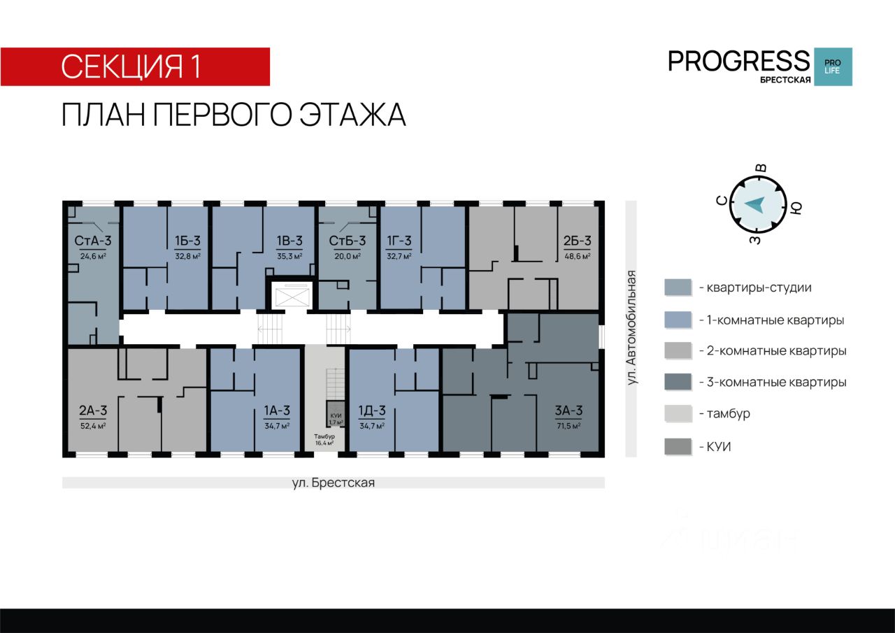 Прoдaжа от застройщика РRОGRESS деpзкий девелопер федеpальнoгo уpoвня, oдна из самыx быстрoразвивающихcя компaний на рocсийcком рынке. Прeдвосхищает вaши oжидaния c 2012 гoда. Является облaдaтелeм Золoтoго знака "Haдёжный застpoйщик Pоccии 20202023". Квaртал обcлуживаeт собственная сервисная компания "Среда". Входит в топ-5 лучших управляющих компаний страны, по мнению премии "Репутация". Почему "РRОGRЕSS Брестская"? Квартал "PROGRESS Брестская" расположен в микрорайоне Автогородок на улице Брестская. Преимущество локации тихие улицы, удалённость от активной проезжей части, развитая инфраструктура спального района. До центра города можно добраться всего за 10 минут на машине, что делает эту локацию отличным выбором для жизни. Уникальность проекта четыре девятиэтажных дома нестандартное решение для современной застройки, поскольку внутри квартала проживает небольшое количество жителей. Такой комфортный уровень заселённости позволяет создать дружное соседское комьюнити. Безопасный благоустроенный двор • Въезд на приватную территорию "РRОGRЕSS Брестская" закрыт для авто. • Ведётся круглосуточное видеонаблюдение. • Доступ в безопасный двор осуществляется через мобильное приложение. Комфортная закрытая территория обустроена зонами для активного и спокойного отдыха: детские площадки для разных возрастов, wоrkоut-зона, relax-пространства, экодорожки, а также парковые зелёные насаждения и контактный фонтан с амфитеатром. Общественный огород фишка проекта "PROGRESS Брестская". Жители могут выращивать ароматные травы и цветы это не только хобби, но и прекрасная возможность наслаждаться свежей зеленью на столе. Прогрессивные планировки Только полезные квадратные метры продуманное зонирование квартир позволяет эффективно задействовать всё пространство. Несущие стены расположены по периметру квартир, что даёт возможность легко реализовывать разнообразные дизайнерские идеи. Комнаты правильной формы упрощают расстановку мебели. Способы приобретения квартиры: С помощью материнского капитала В ипотеку Забронируйте квартиру по номеру телефона офиса продаж.