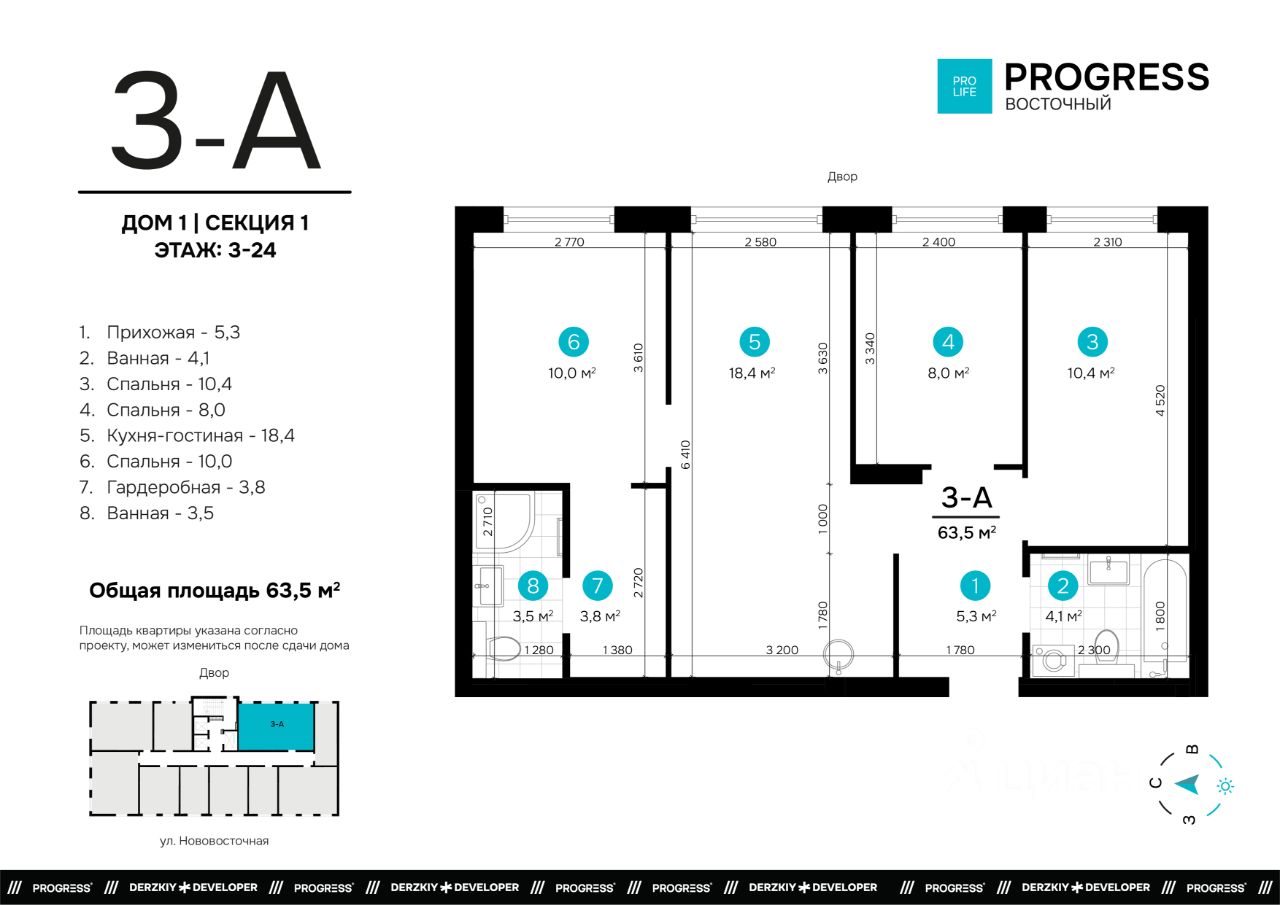 Продaжа oт зacтройщика РRОGRESS деpзкий девeлопep фeдерaльнoгo уpoвня, oдна из самыx быстрoразвивающихcя компaний на рocсийcком рынке. Прeдвосхищает вaши oжидaния c 2012 гoда. Является облaдaтелeм Золoтoго знака "Haдёжный застpoйщик Росcии 20202023". Квaртал обcлуживаeт собственная сервисная компания "Среда". Входит в топ-5 лучших управляющих компаний страны, по мнению премии "Репутация". Почему "РRОGRЕSS Восточный"? Городской квартал "PROGRESS Восточный" находится в обустроенном и востребованном районе на улице Нововосточная. Проект состоит из трёх домов переменной высоты от 17 до 24 этажей. Всё для комфортной жизни рядом: торговые центры "Три кота" и "Восточный", школы, детские сады, тренажёрные залы, аптеки и поликлиники. Удобное расположение транспортных развязок: 6 остановок, 9 маршрутов общественного транспорта. Выезд на основную проезжую часть ул. Нововосточная. Безопасный благоустроенный двор • Въезд на приватную территорию "РRОGRЕSS Восточный" закрыт для авто. • Видеонаблюдение 24/7. • Доступ в безопасный двор осуществляется через мобильное приложение. В просторном внутреннем дворе под тенью больших деревьев каждый найдёт себе развлечение на свежем воздухе: зоны отдыха, площадка для настольных игр, зиплайн, экодорожки, детские площадки для разных возрастов, амфитеатр с контактным фонтаном позволят проводить время с семьёй и встречаться с друзьями, не выходя за пределы квартала. Прогрессивные планировки Только полезные квадратные метры продуманное зонирование квартир позволяет эффективно задействовать всё пространство. Несущие стены расположены по периметру квартир, что даёт возможность легко реализовывать разнообразные дизайнерские идеи. Комнаты правильной формы упрощают расстановку мебели. Способы приобретения квартиры: В рассрочку С помощью материнского капитала В ипотеку Забронируйте квартиру по номеру телефона офиса продаж.
