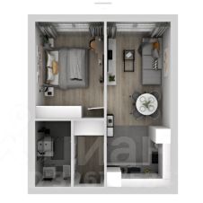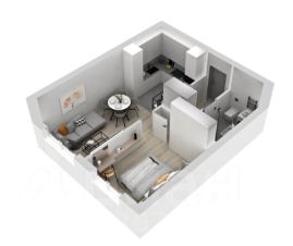 Планировочное решение квартиры предусматривает просторную кухню-гостиную, спальню, прихожую и совмещенный санузел.
