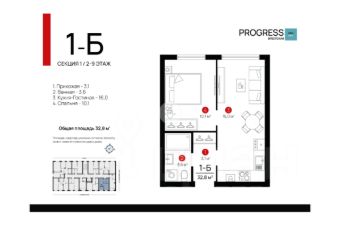 Продаю 1-комн. квартиру в жилом комплексе PROGRESS Брестская.