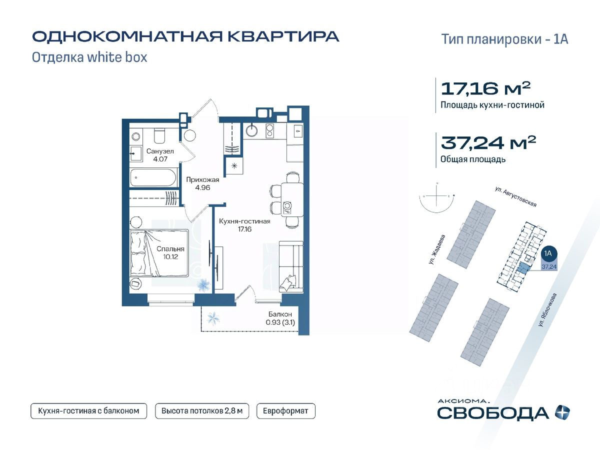 Продаётся 1-комнатная квартира в строящемся доме (Дом 1), срок сдачи: I-кв. 2029, общей площадью 37.24 кв.м., на 8 этаже. Новый жилой комплекс "Аксиома. Свобода плюс" от застройщика "Аксиома" расположен по адресу: Россия, Астрахань, Августовская улица