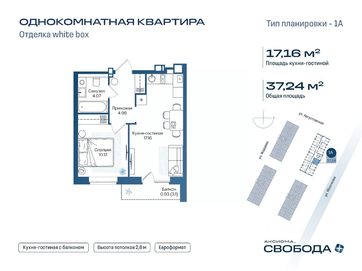 Продаётся 1-комнатная квартира в строящемся доме (Дом 1), срок сдачи: I-кв. 2029, общей площадью 37.24 кв.м., на 9 этаже. Новый жилой комплекс "Аксиома. Свобода плюс" от застройщика "Аксиома" расположен по адресу: Россия, Астрахань, Августовская улица