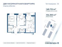 Продаётся 2-комнатная квартира в строящемся доме (Дом 1), срок сдачи: I-кв. 2029, общей площадью 51.55 кв.м., на 12 этаже. Новый жилой комплекс "Аксиома. Свобода плюс" от застройщика "Аксиома" расположен по адресу: Россия, Астрахань, Августовская улица