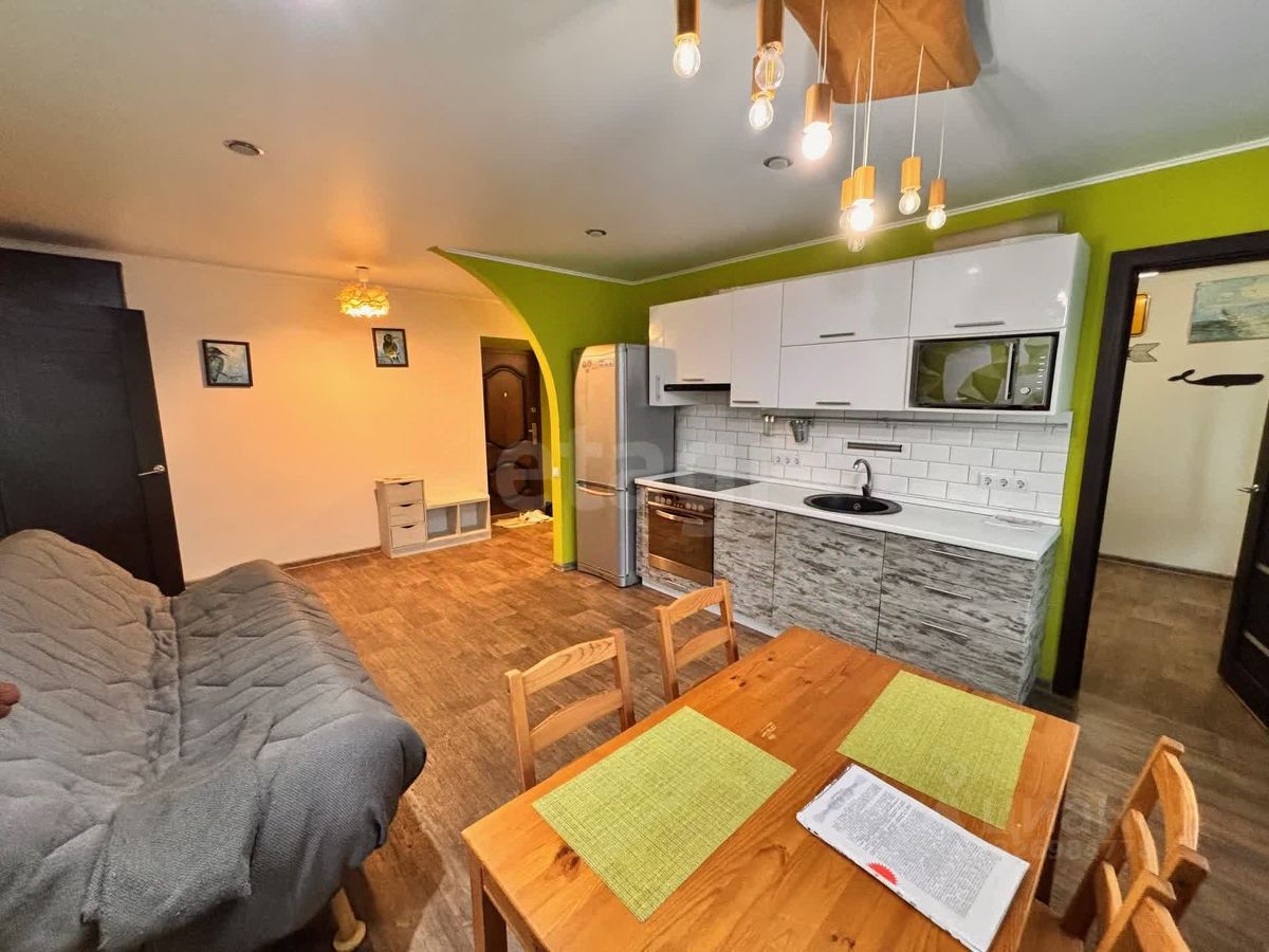 В результате грамотной перепланировки была увеличена жилая площадь: перенесен санузел, добавлена отдельная спальня, а кухня объединена с гостиной, создав современное единое пространство для жизни и приема гостей.