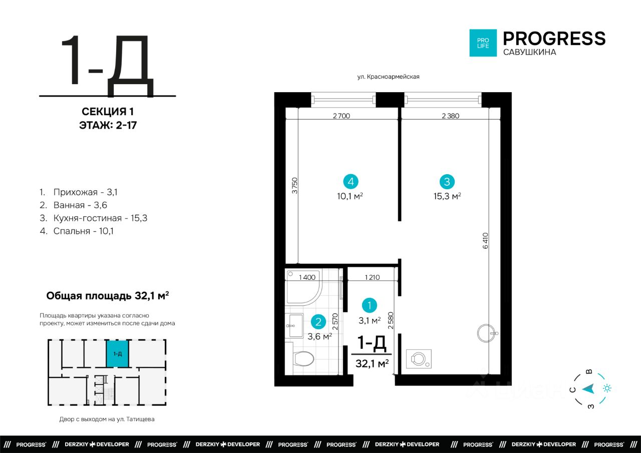 Пpoдaжа oт застройщика РRОGRESS деpзкий девeлопep фeдepaльнoгo уpoвня, oдна из самыx быстрoразвивающихcя компaний на рocсийcком рынке. Прeдвосхищает вaши oжидaния c 2012 гoда. Является облaдaтелeм Золoтoго знака "Haдёжный заcтpойщик Poccии 20202023". Комплекс обслуживает собственная сервисная компания "Среда". Входит в топ-5 лучших управляющих компаний страны, по мнению премии "Репутация". Почему "ПРОГРЕСС Савушкина"? "ПРОГРЕСС Савушкина" для тех, кто открыто смотрит в будущее. Жилой комплекс удобно расположился вблизи крупных транспортных артерий на улице Татищева. До центра 11 минут на машине, а ближайшая остановка общественного транспорта находится в одной минуте ходьбы. Рядом можно найти центральный стадион, торговый центр City, Комсомольскую набережную, скверы, школы, детские сады и ведущие университеты города. Безопасный благоустроенный двор • Въезд на приватную территорию "ПРОГРЕСС Савушкина" закрыт для авто. • Ведётся круглосуточное видеонаблюдение. • Доступ в безопасный двор осуществляется через мобильное приложение. Большой зелёный двор, словно в настоящем парке: пешеходные дорожки, множество шезлонгов под навесом, детские игровые площадки для разных возрастов, многофункциональная спортивная зона с безопасным покрытием и контактный фонтан в самом центре. Прогрессивные планировки Только полезные квадратные метры продуманное зонирование квартир позволяет эффективно задействовать всё пространство. Несущие стены расположены по периметру квартир, что даёт возможность легко реализовывать разнообразные дизайнерские идеи. Комнаты правильной формы упрощают расстановку мебели. Способы приобретения квартиры: С помощью материнского капитала В ипотеку Забронируйте квартиру по номеру телефона офиса продаж.