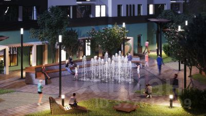 Амфитеатр с контактным фонтаном настоящий бриллиант в самом сердце двора. Центр притяжения всех жителей комплекса выполнен в форме этого драгоценного камня.
