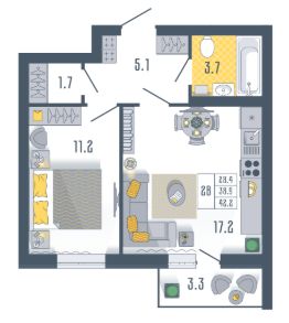 Продуманные планировки: На лестничной площадке не более восьми квартир, минимальная площадь квартиры 33,3 кв.м. Мы отказались от маленьких студий, чтобы обеспечить вам простор и комфорт.