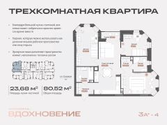 Продаётся 3-комнатная квартира в строящемся доме (Дом 50А), срок сдачи: IV-кв. 2027, общей площадью 80.52 кв.м., на 7 этаже. Новый жилой комплекс "Аксиома.Вдохновение" от застройщика "Аксиома" расположен по адресу: Астрахань, ул., Боевая, 50А