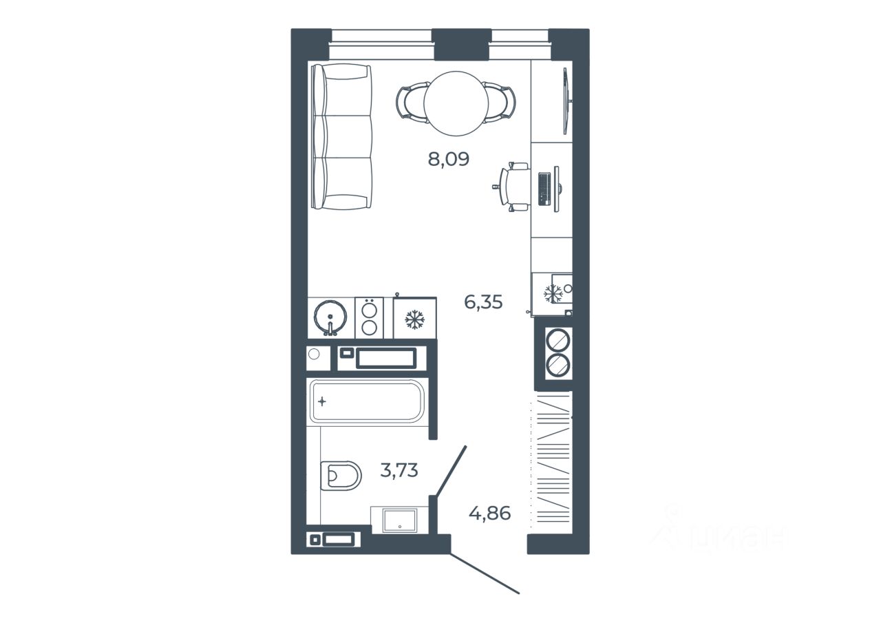 Общая площадь23,03 м²