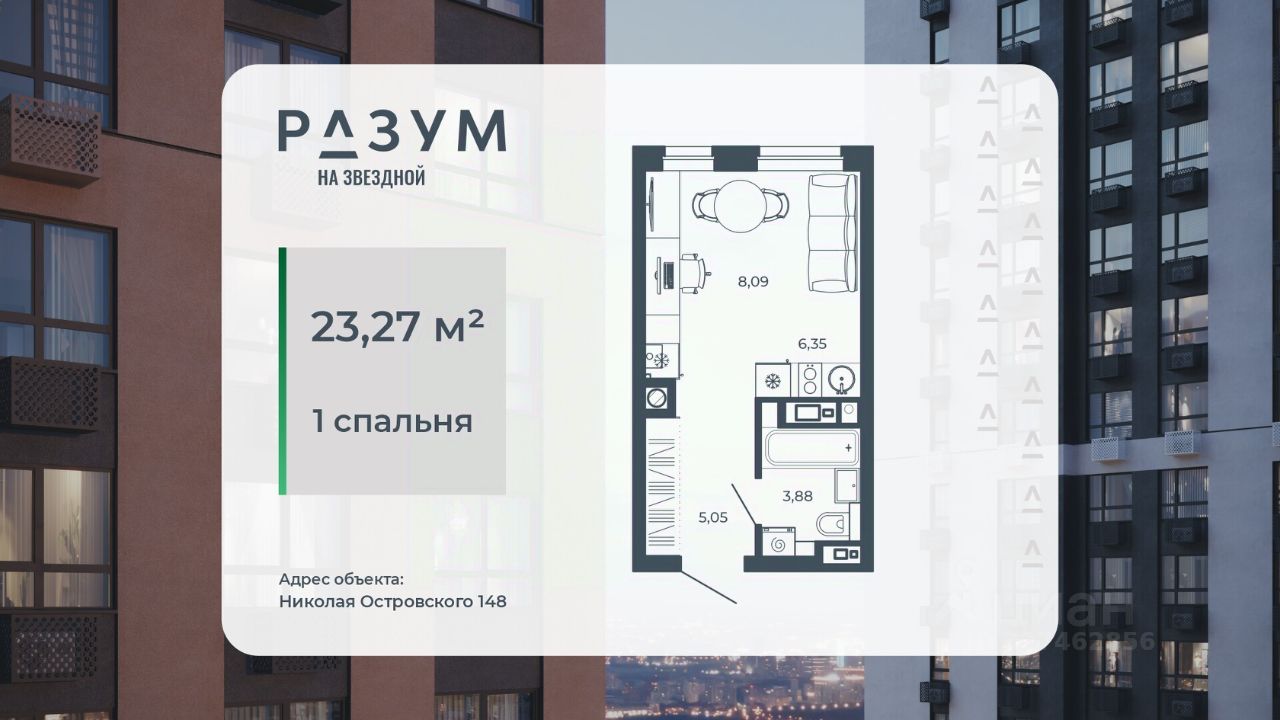 РАЗУМ на Звездной — высотный жилой комплекс компании РАЗУМ, создателя Сердце Каспия и Наследие. Здесь есть: развитый район, закрытая безопасная территория и транспортная доступность. Три 26-этажных дома расположены в границах ул. Звездной и Николая Островского. В пешей доступности: - 3 школы; - 4 государственных детских сада; - гипермаркет; - супермаркеты; - развивающие образовательные центры. РАЗУМ на Звездной — это: - 60 % озеленения в благоустройстве, детские игровые конструкции и зоны отдыха выполнены из экологичных материалов; - многоуровневое освещение территории с архитектурной подсветкой комплекса; - закрытая территория комплекса и видеонаблюдение по периметру и в холлах; - безбарьерная среда на территории жилого комплекса: удобство для велосипедистов, родителей с маленькими детьми и путешественников с большими чемоданами; - уютная зона ожидания с мягкой мебелью в холлах проекта и раздельные зоны под колясочные и велосипедные; - кладовые помещения на каждом этаже. В проекте РАЗУМ на Звездной представлено 13 планировочных решений от 21,08 м² до 63,39 м². Есть квартиры с предчистовой отделкой. В квартирах выровнены стены, выполнена полусухая стяжка пола, установлены радиаторы и трехконтурный газовый котел. В квартиру заведено электричество и установлена входная дверь.